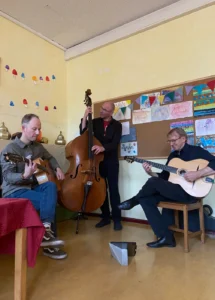 Die Horträume verwandelten sich in ein gemütliches Café, in dem die von Eltern zubereiteten Köstlichkeiten serviert wurden, begleitet von der Live-Musik von Herrn Gauß’ Band. Im Werkraum lud unser schuleigener Basar zum Stöbern ein, mit vielen liebevoll gefertigten Schätzen aus Schüler- und Elternhand. Die verbliebenen Dinge werden übrigens sorgfältig eingelagert und bei kommenden Schulveranstaltungen wieder zum Verkauf angeboten – so können sich auch später noch viele daran erfreuen.
