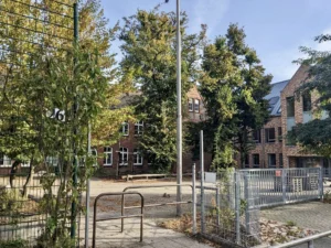 Den Neubau an der Ostseite des Grundstücks haben wir 2017 errichtet. Dort befinden sich die Klassenräume der Klassen 10 bis 12, die Mensa, Räume für den Fachunterricht und der Saal, den wir für Veranstaltungen nutzen.